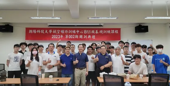 朝陽科技大學附設航空維修訓練中心第一屆學生001班正式開課啦~~感謝鄭校長、賴副校長以及中心主任王主任為首期學員們進行精神喊話,透過各位師長的訓勉,相信同學們一定能戮力向學,朝自己所設立的目標前進~並期望同學們在畢業後能在職場發光發熱,擦亮朝陽科技大學的金字招牌!